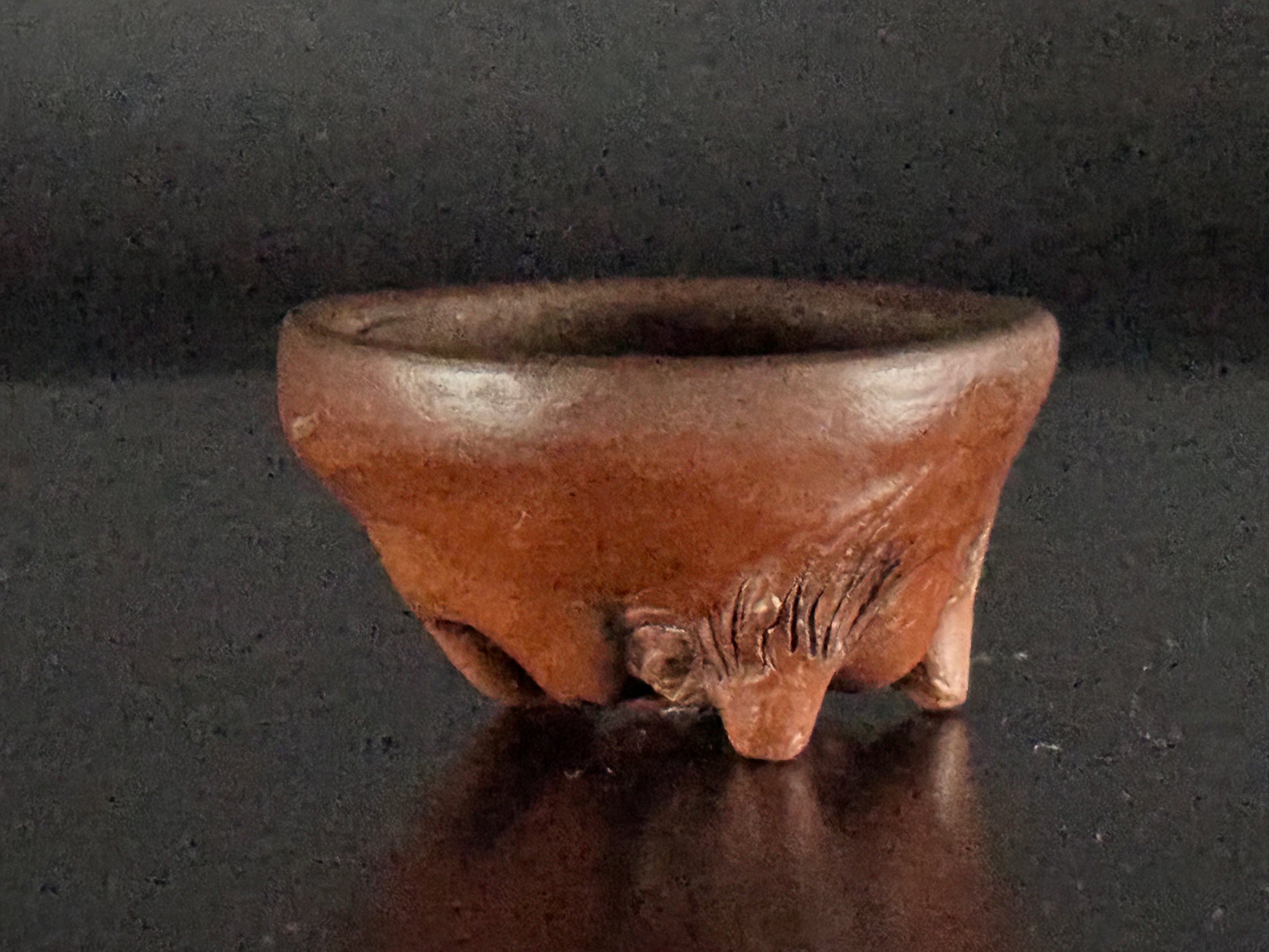 Bigei is highly regarded for his expertise in crafting shohin bonsai pots, particularly the shaded vermillion ones.