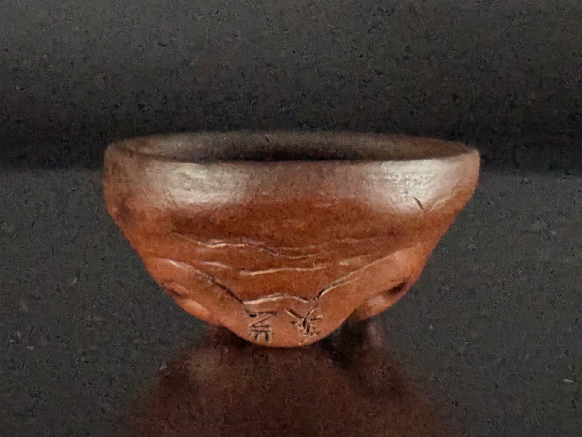 Bigei is particularly recognised for his distinctive vermilion (shudei) pots, often featuring a beautiful burnished finish. He also creates glazed pots and incorporates decorative elements, such as nail carvings, sketches, and relief work, into his designs.