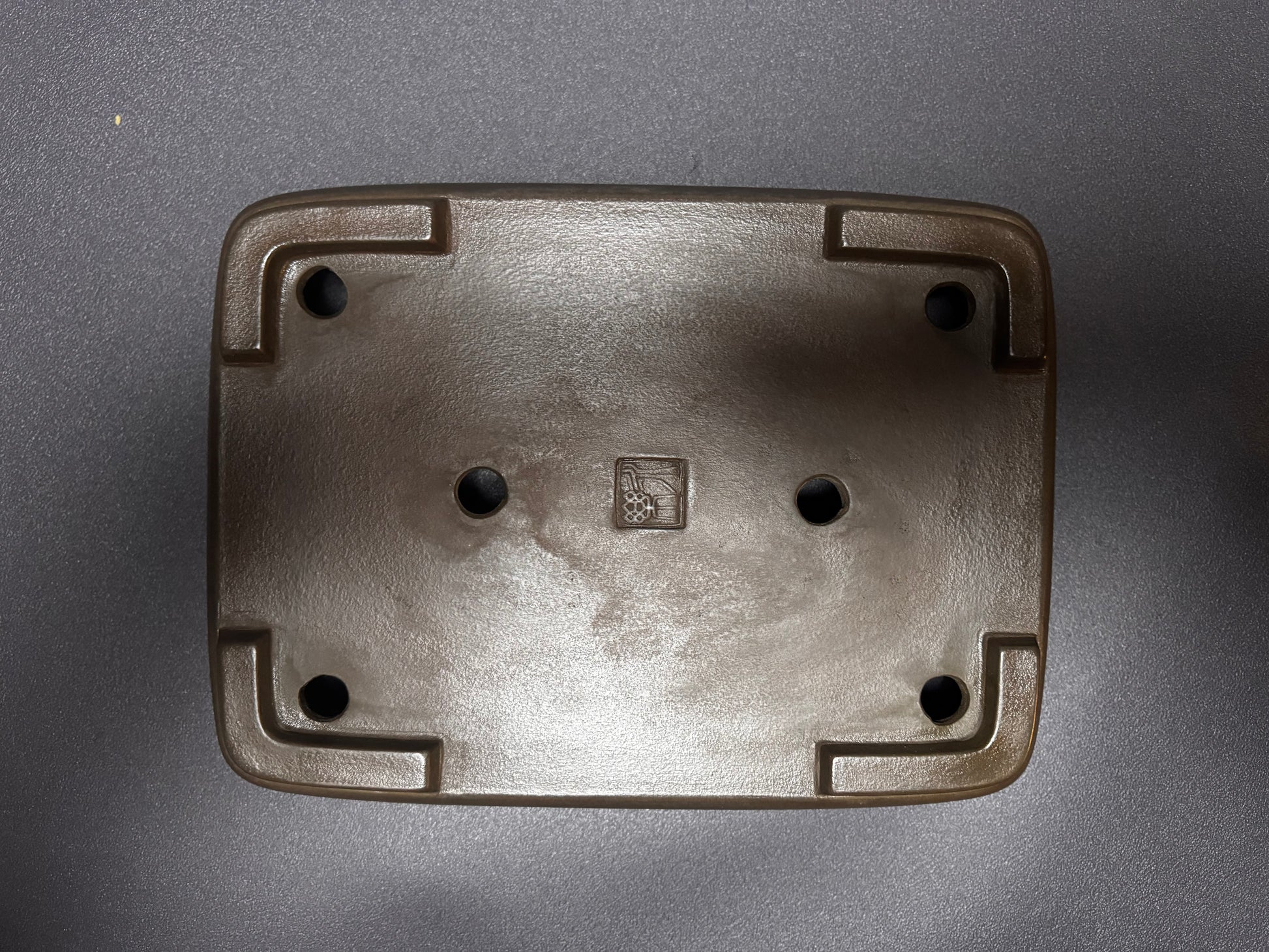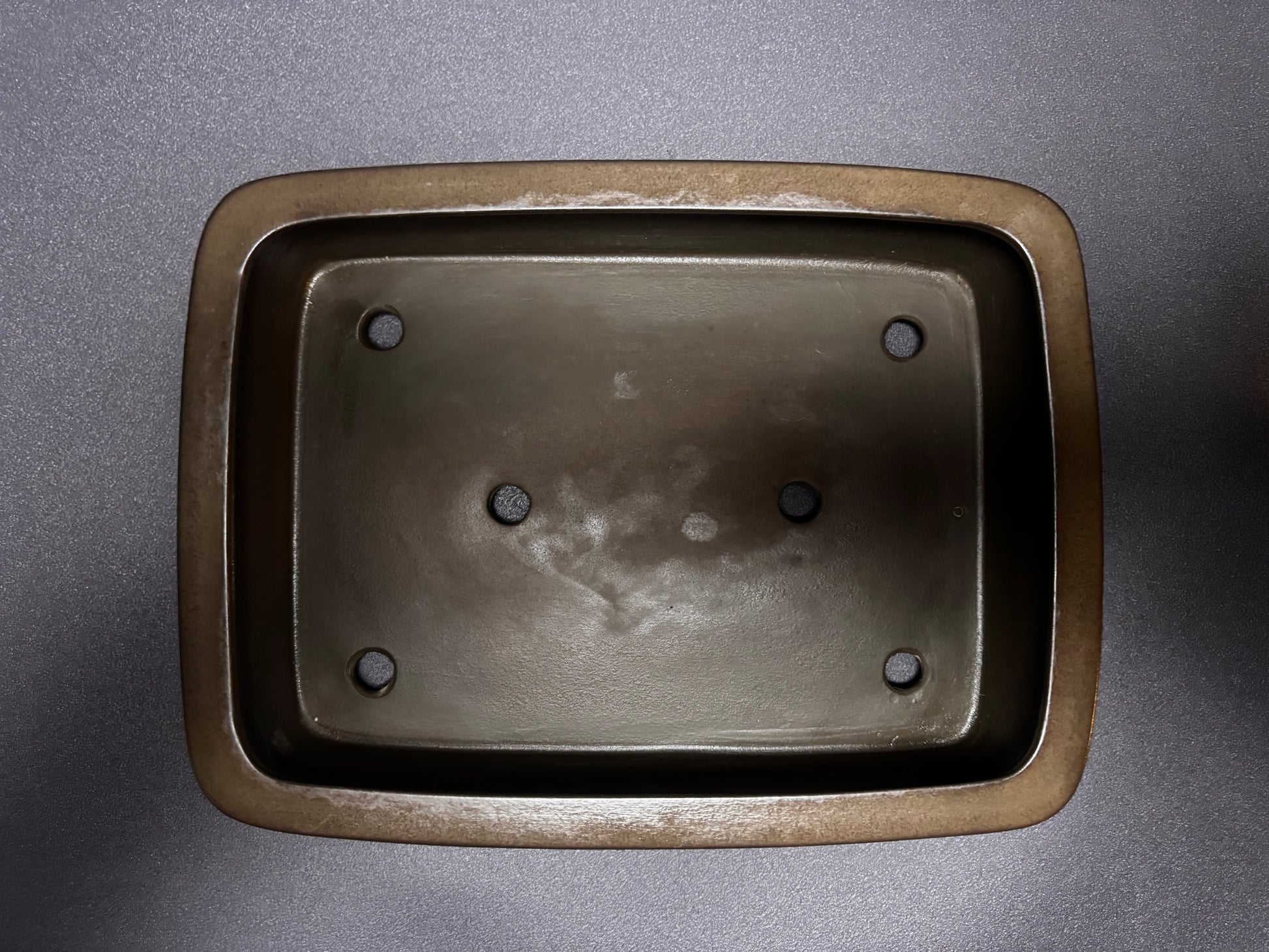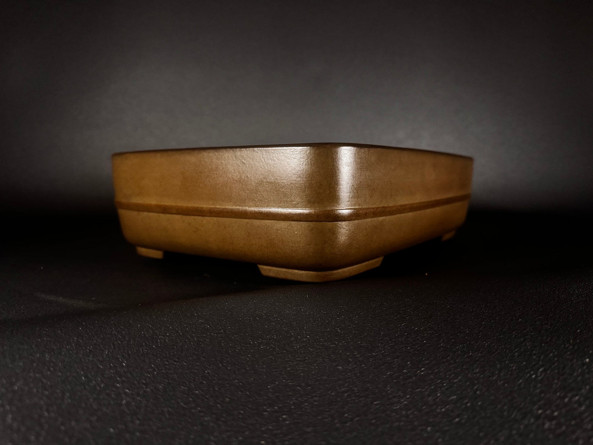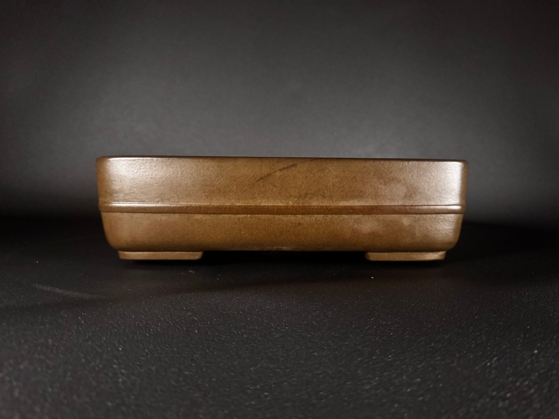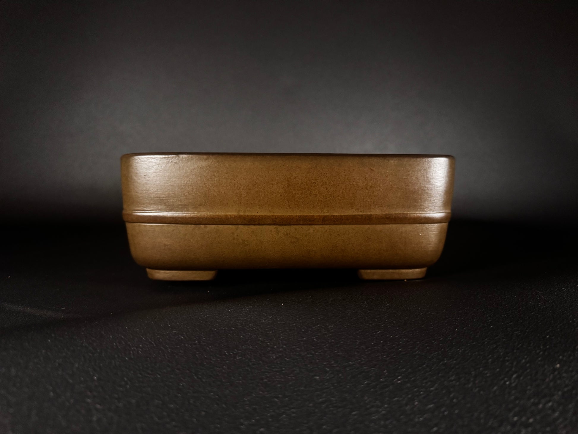 This rare handmade unglazed rectangular pot features an inner rim (内縁), receded straight-cut feet, and a refined middle band, with a subtle patina (風合い) and precise workmanship, showcasing the quality of Eiraku’s handbuilt works, which are much less common than his cast or moulded pieces. Cold-resistant (耐寒性) and suitable for exhibition—a fine balance of 用と美 (utility and beauty).