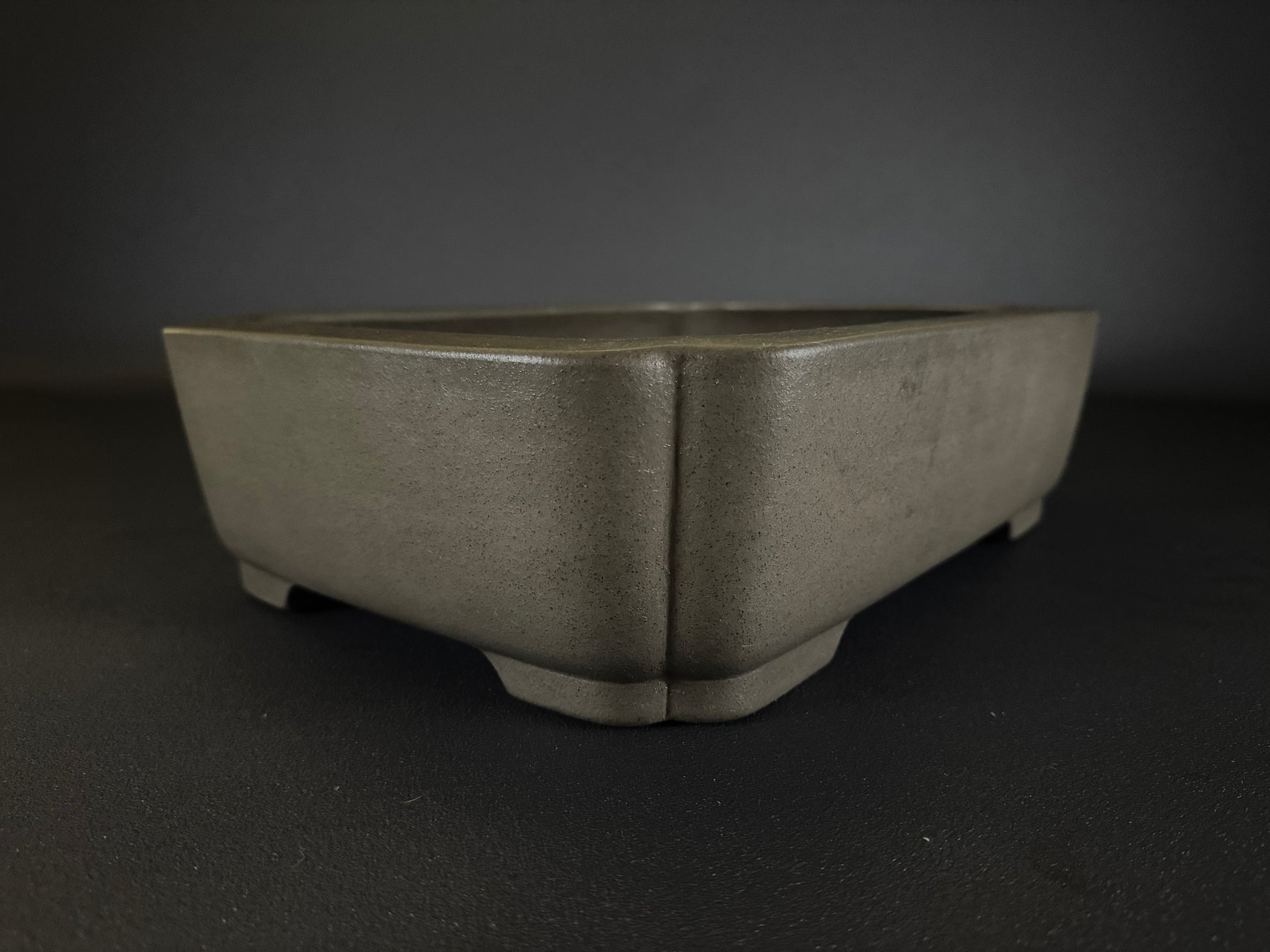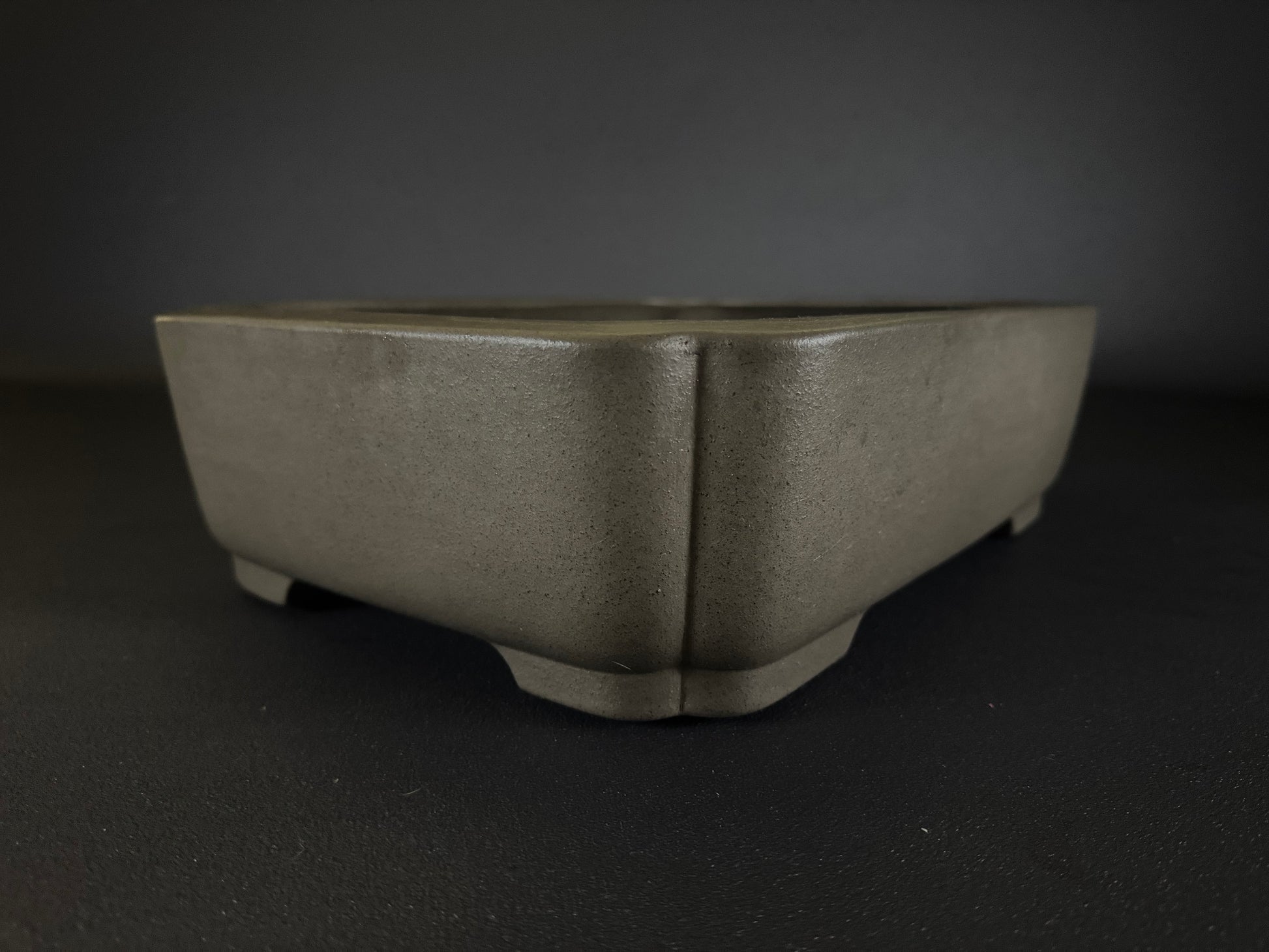 This strong rectangular (長方形) form is crafted from excellent Tokoname clay, left unglazed (無釉) to highlight its natural speckled surface. The corners feature a subtle raised vertical line, creating an elegant and powerful stance.