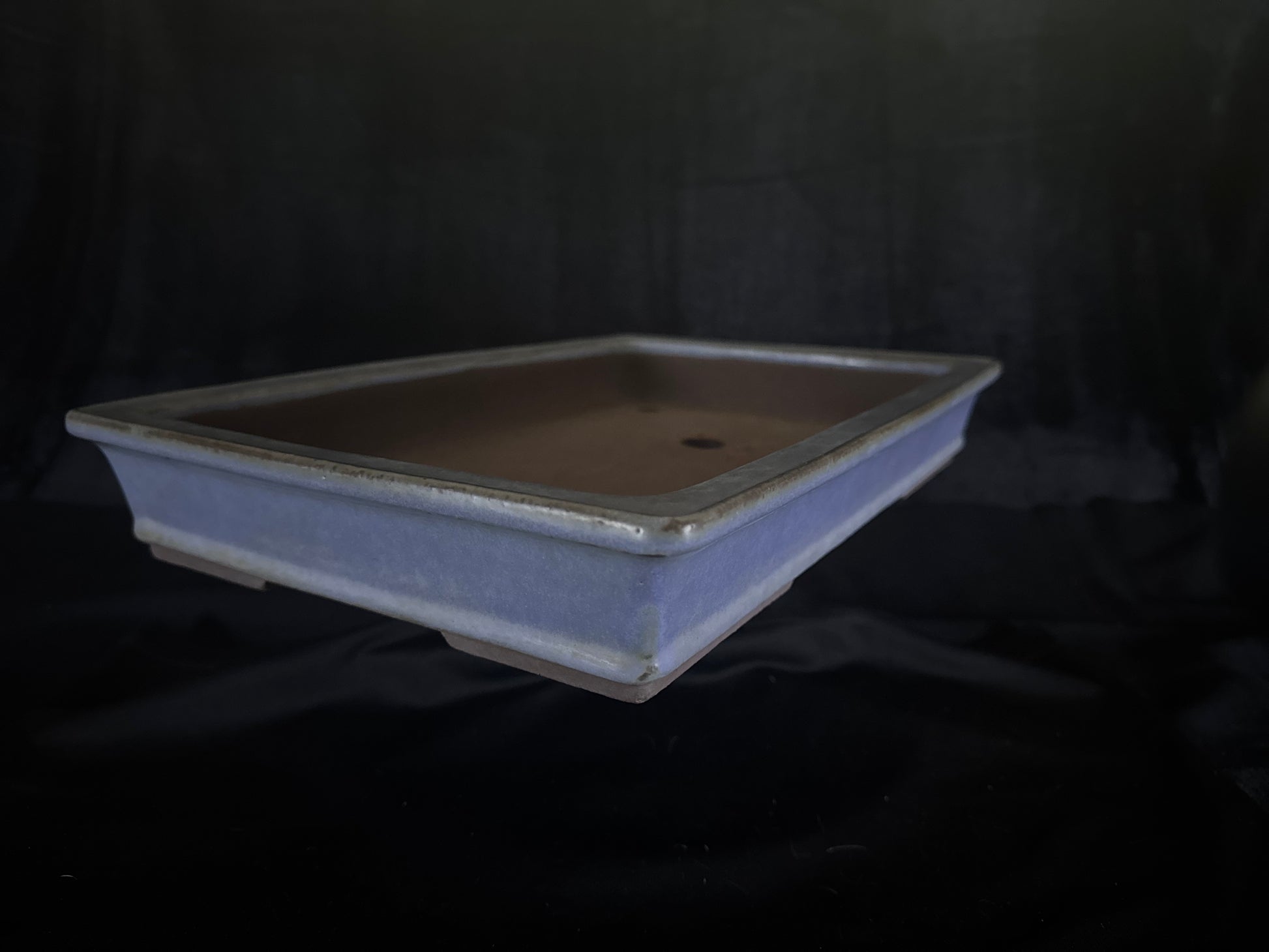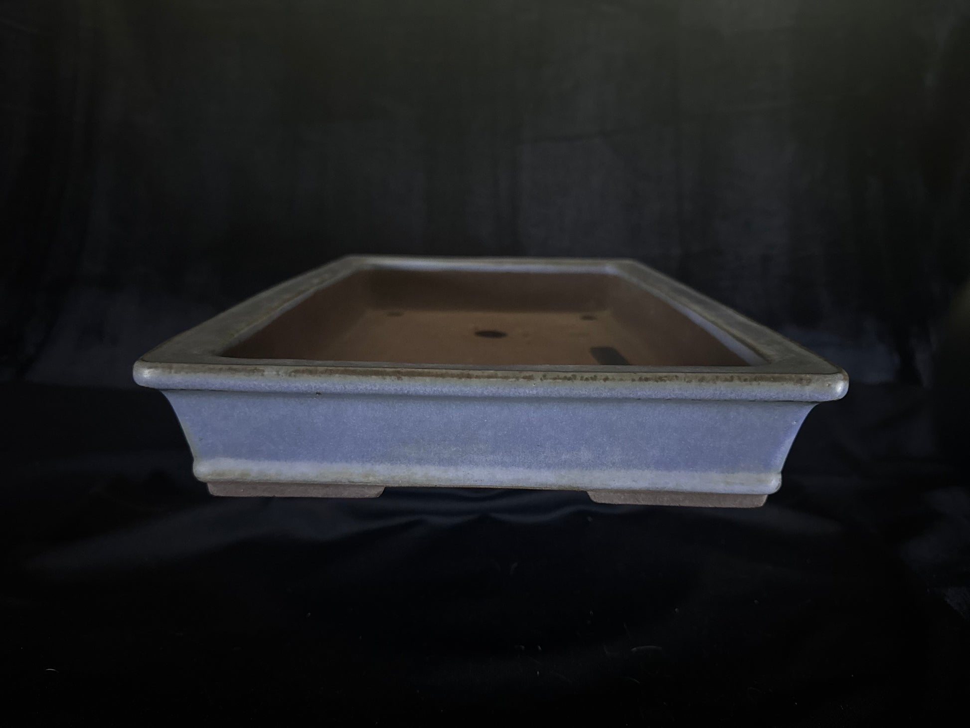 Handmade bonsai pot, glazed, rectangular, in a classic and clean light blue Kinyo glaze,