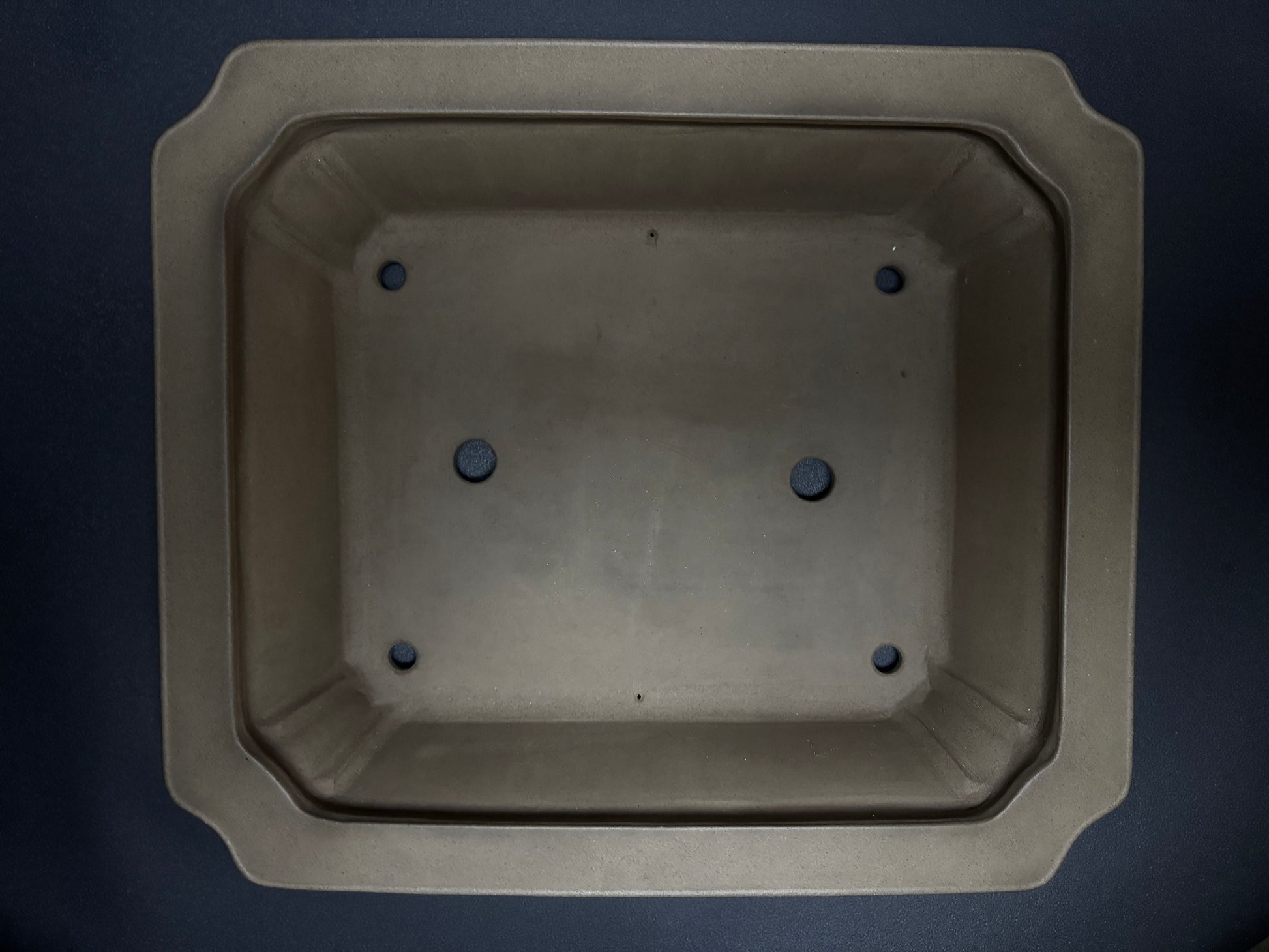 With its substantial dimensions — 46.9 × 40.9 × 14.3 cm — this piece is ideal for medium to large bonsai styles, including formal upright pines (黒松, Kuromatsu), shimpaku junipers (真柏, Shinpaku), or broad-leaved deciduous trees like maples (楓, Kaede) and zelkovas (欅, Keyaki). The dignified silhouette and balanced proportions make this pot especially suitable for exhibition use or refined long-term development.