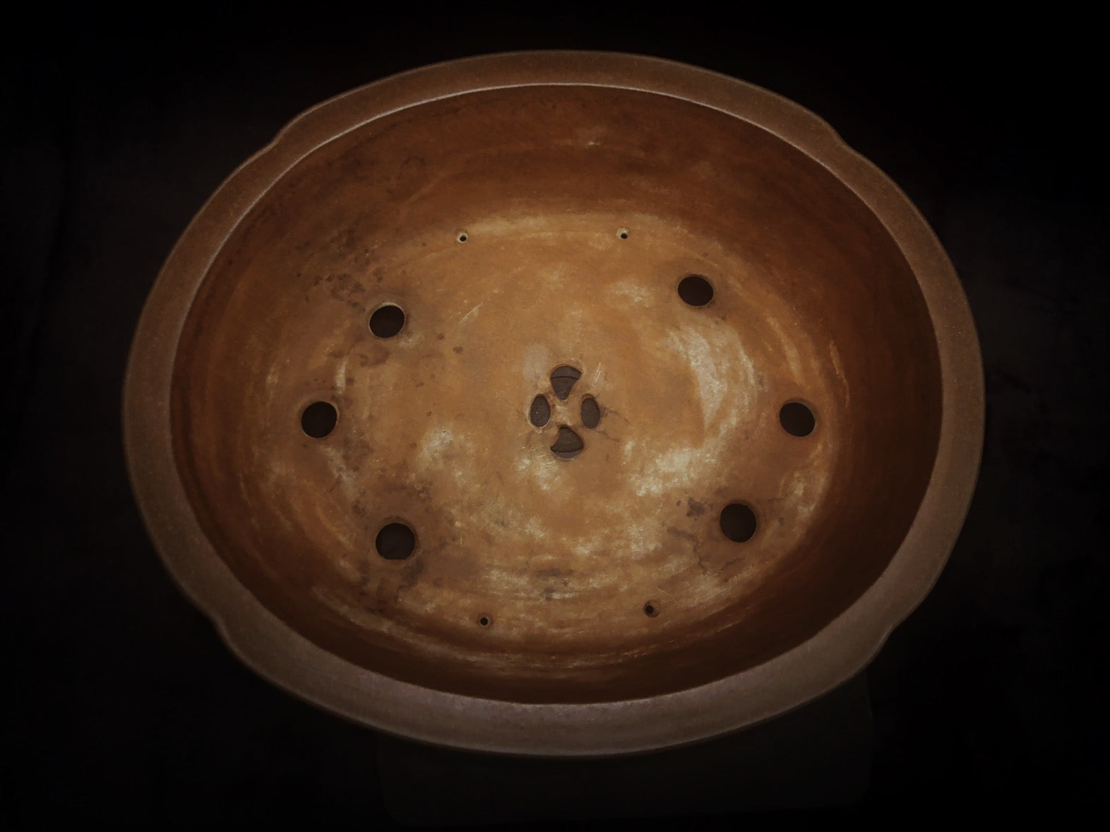 A superior unglazed oval in a soft mokko design, by the great Gyouzan of Tokoname.