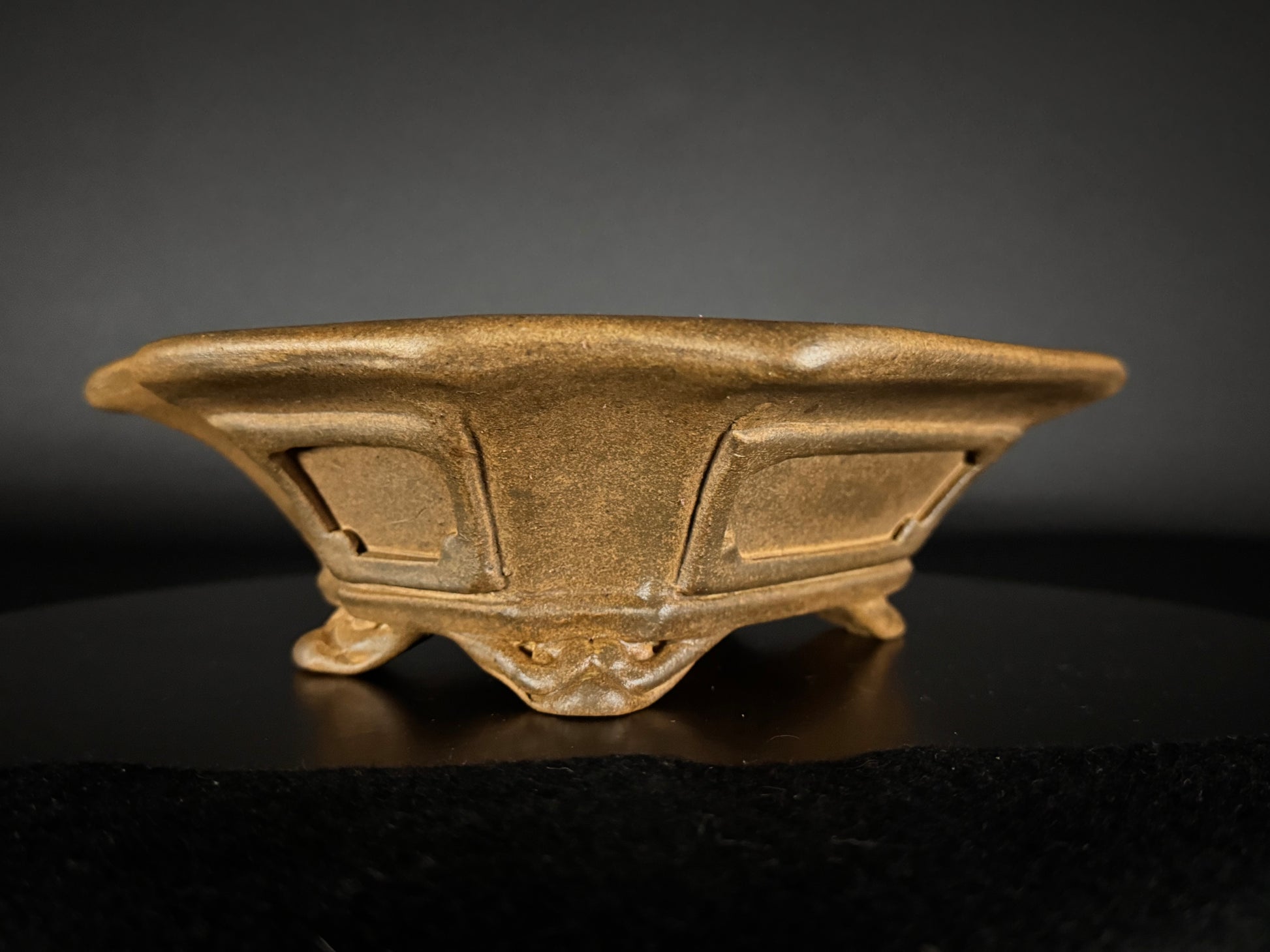 The unglazed clay (無釉土), rich with natural sandy inclusions (砂気), glows with an earthy warmth that embodies the spirit of Tokoname-yaki. Subtle panel carving (面取り装飾) adds architectural depth, casting soft shadows across the surface, this work is both functional and deeply artistic — a vessel that embodies wabi-sabi 侘寂, the beauty of quiet imperfection and timeless simplicity.