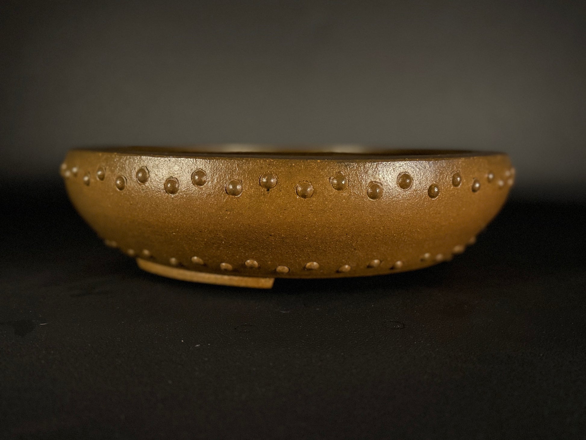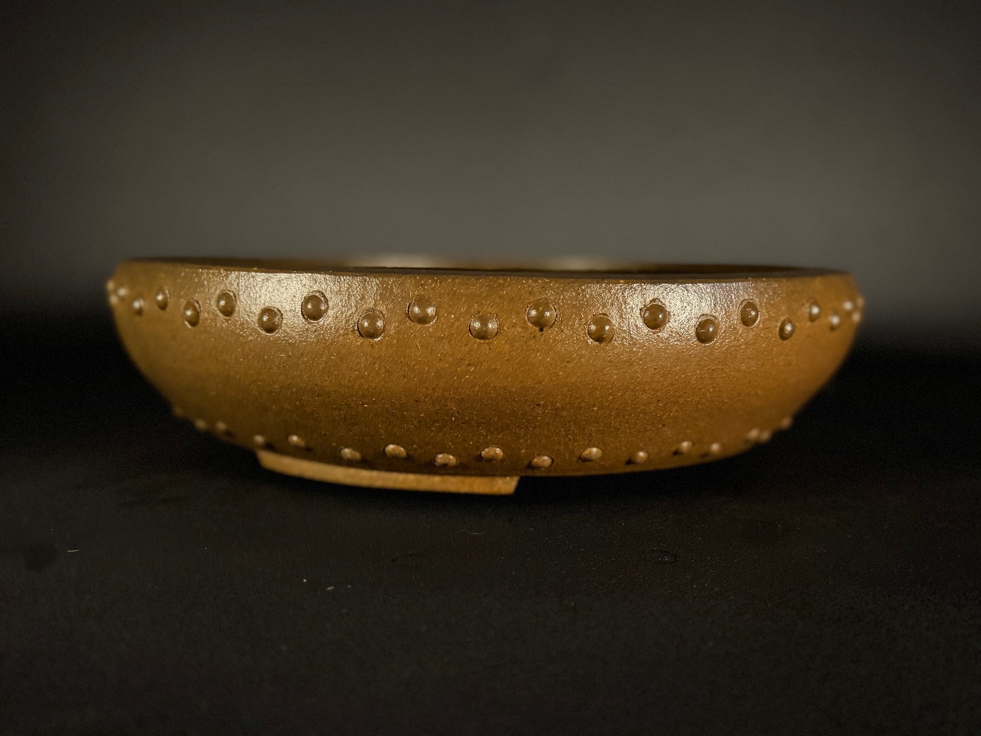 A beautifully crafted, rare, and striking round bonsai pot by Koshosen (小松泉), this piece is an exceptional example of traditional Japanese bonsai ceramics.