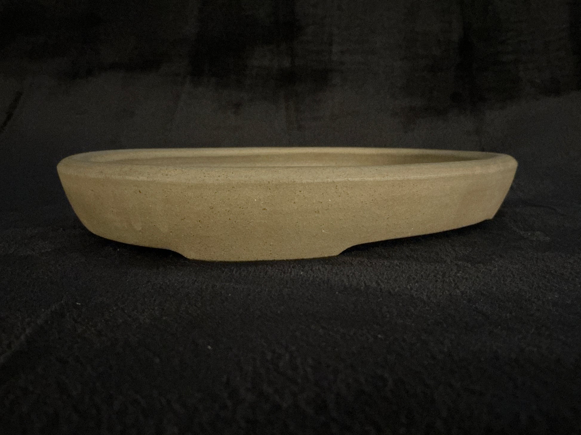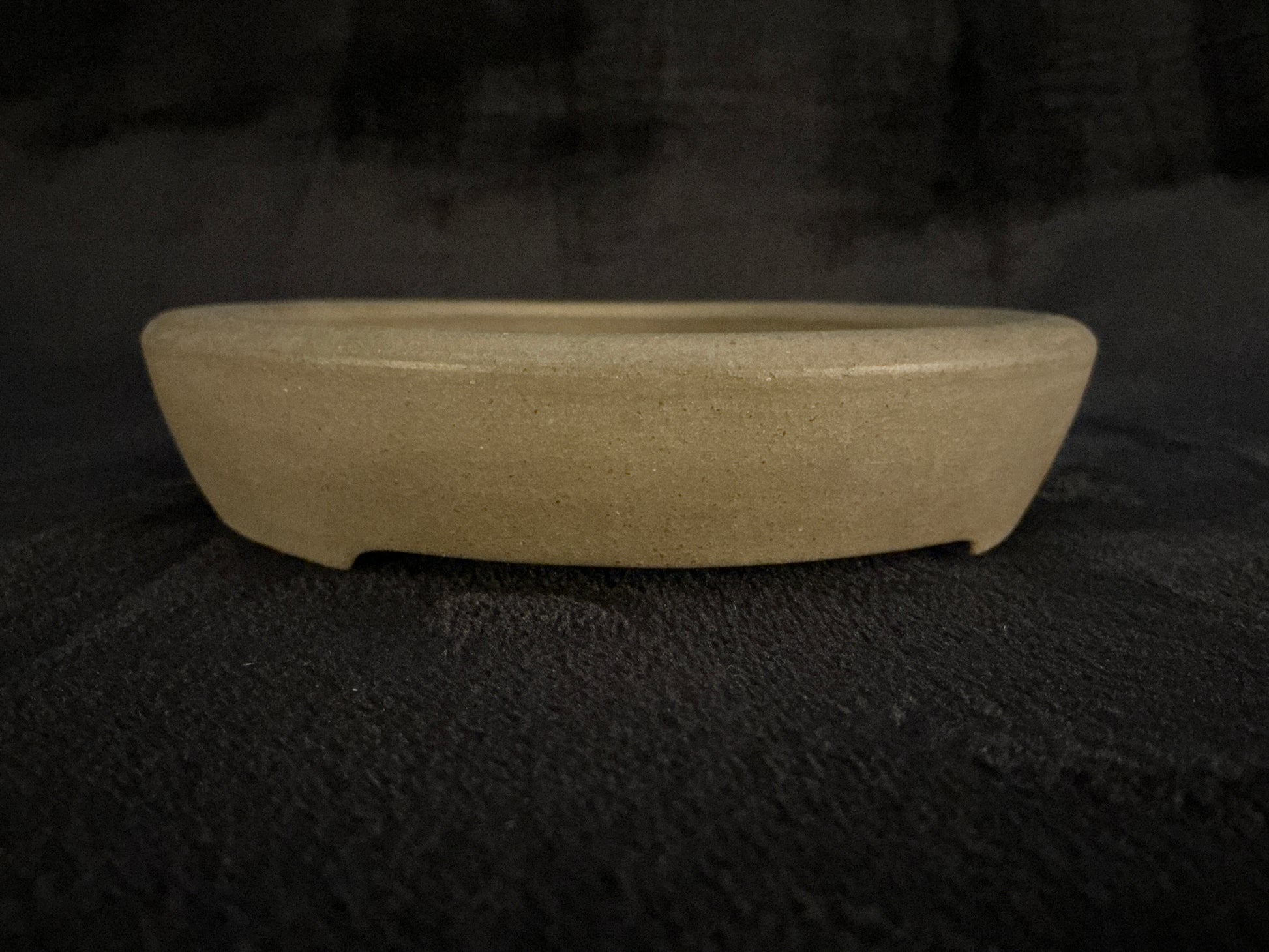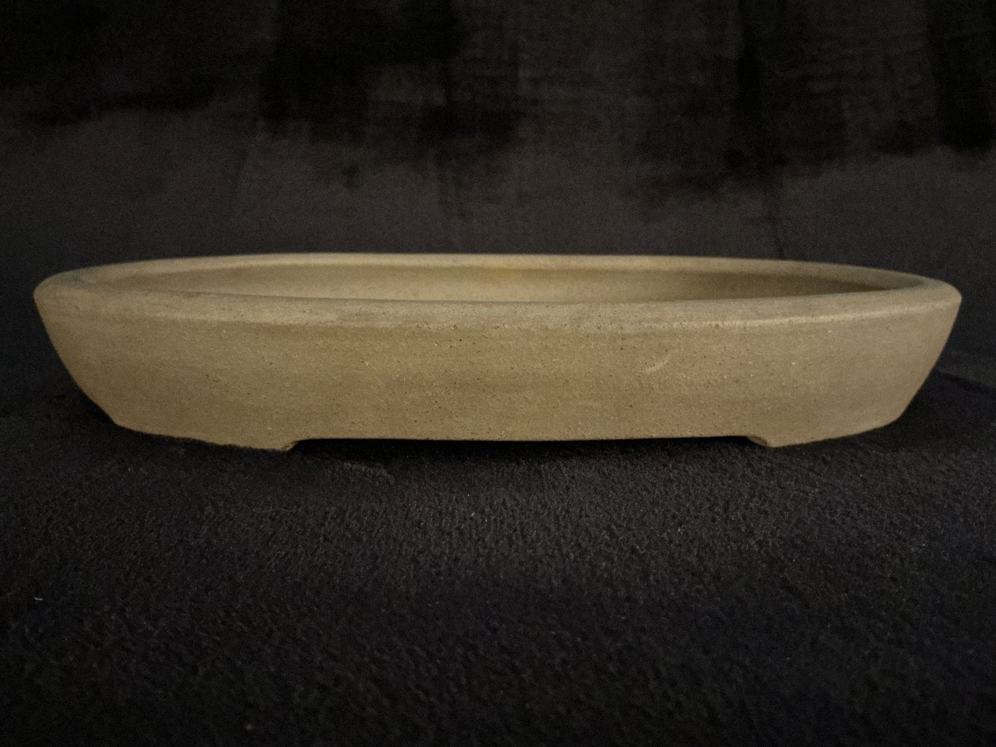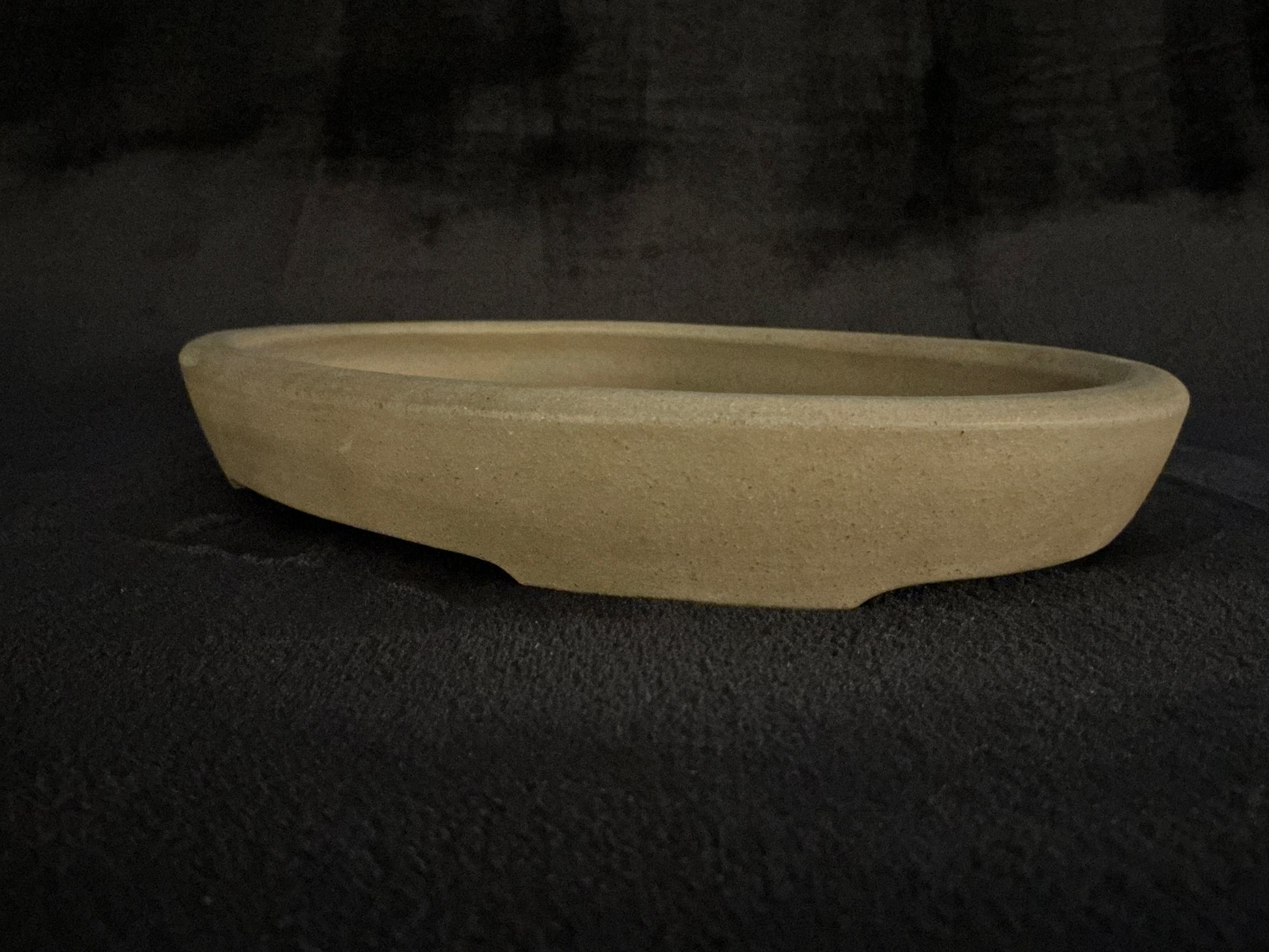 A medium/small unglazed, oval, Japanese Bonsai pot, curved profile with slight internal rim, straight cut feet, in proprietary clay,