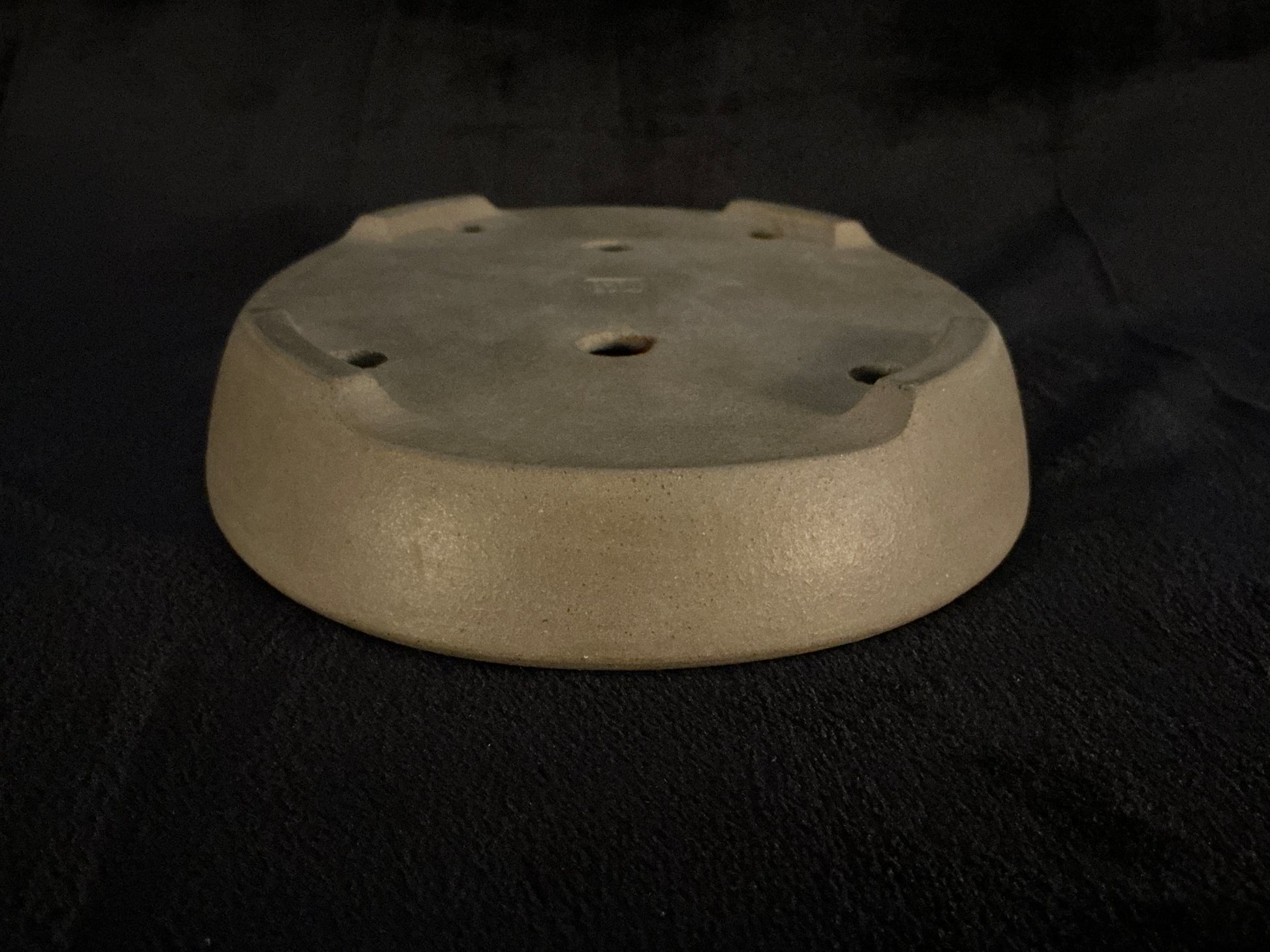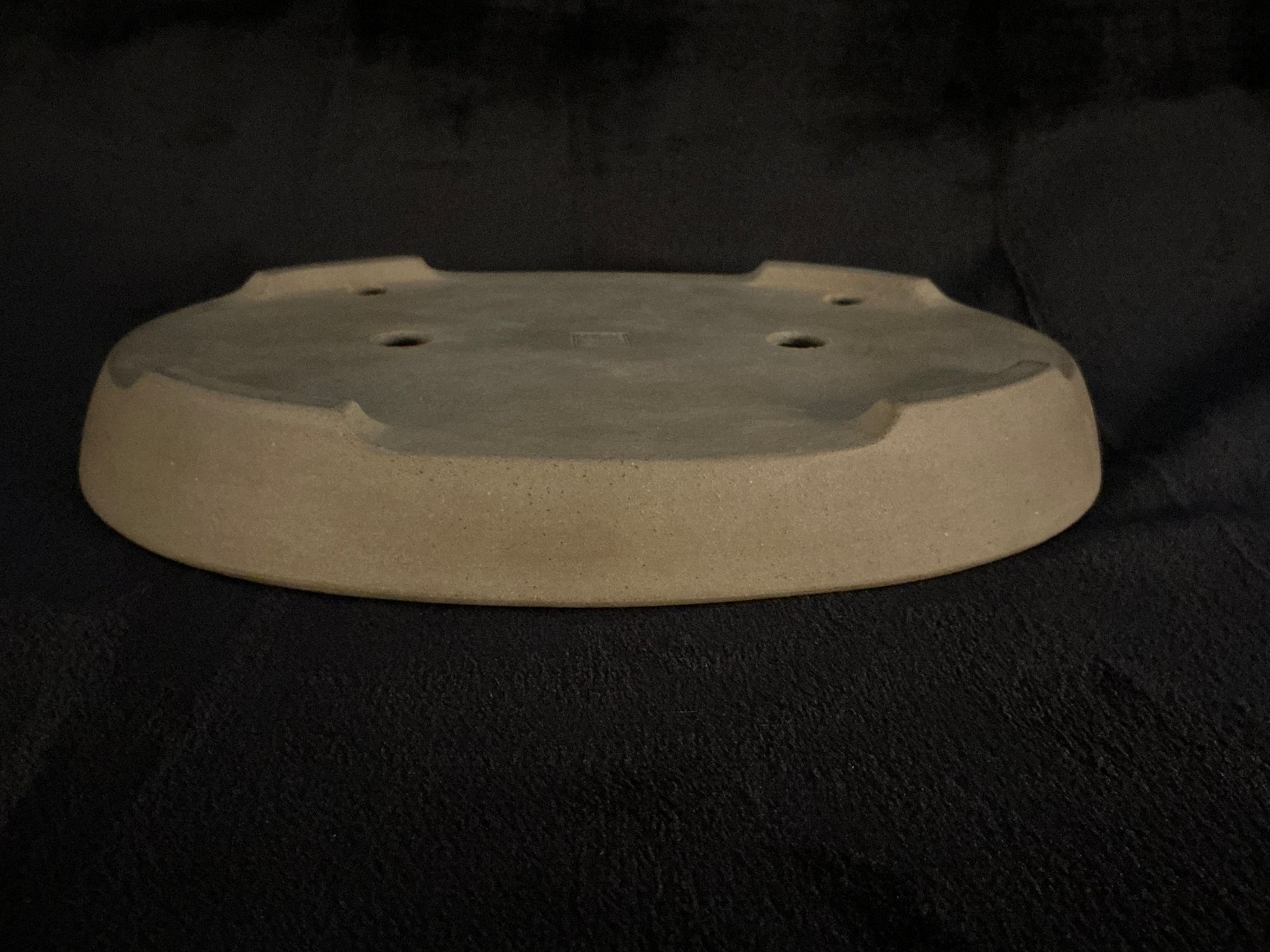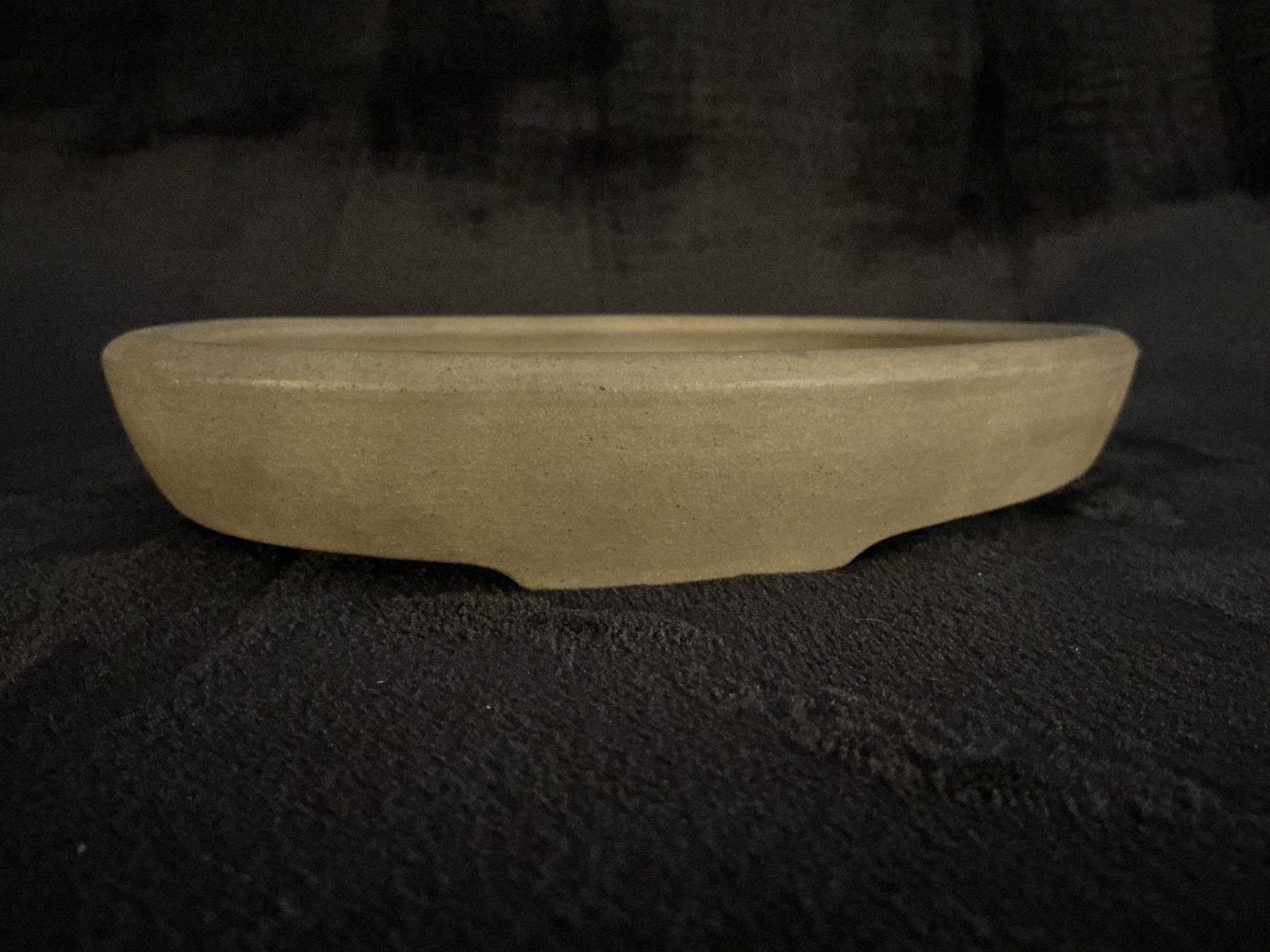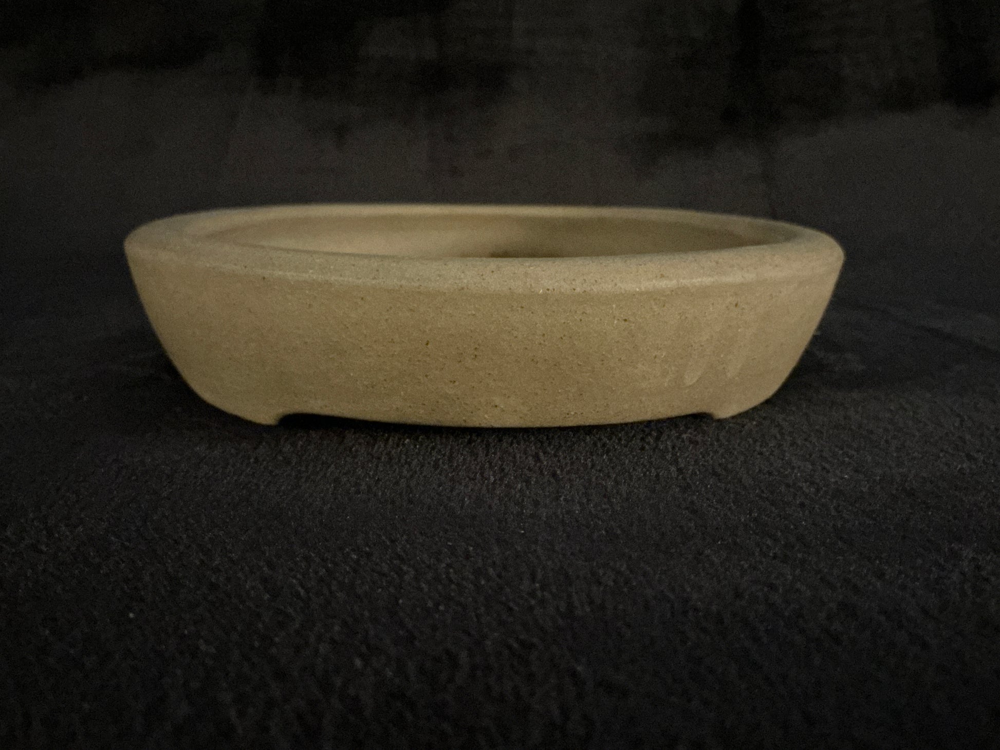 A medium/small unglazed, oval, Japanese Bonsai pot, curved profile with slight internal rim, straight cut feet, in proprietary clay,