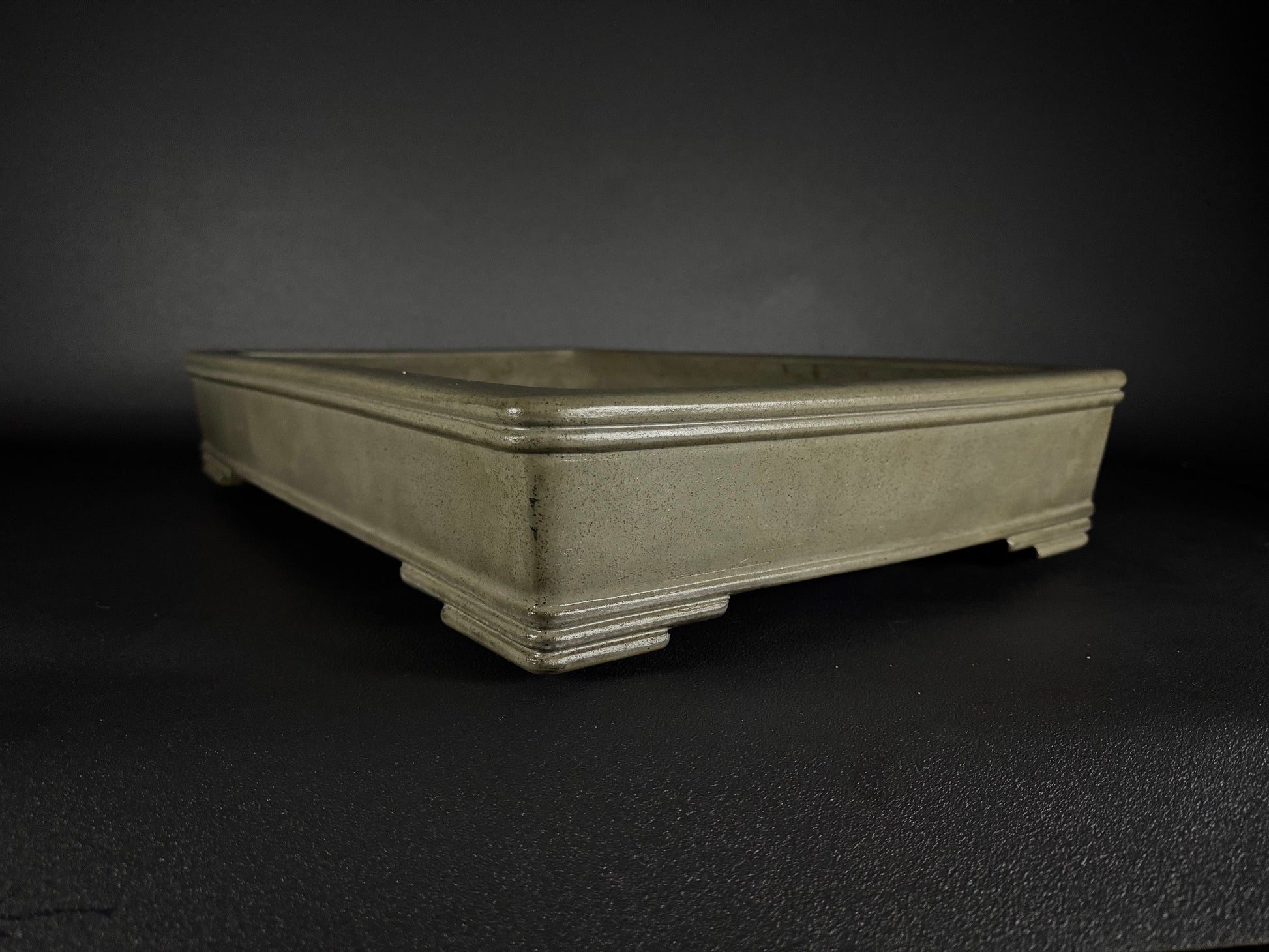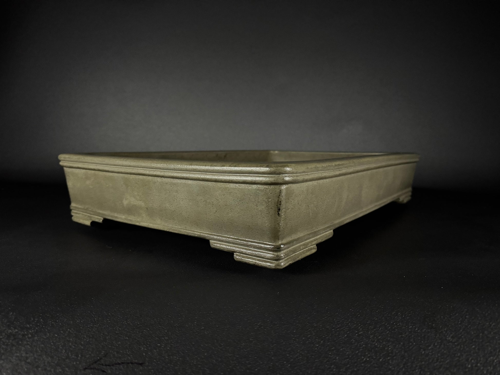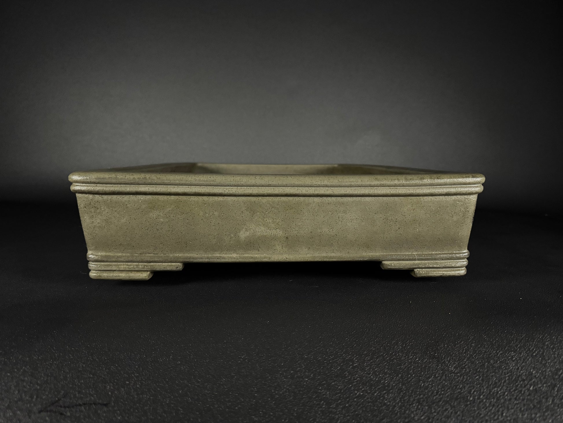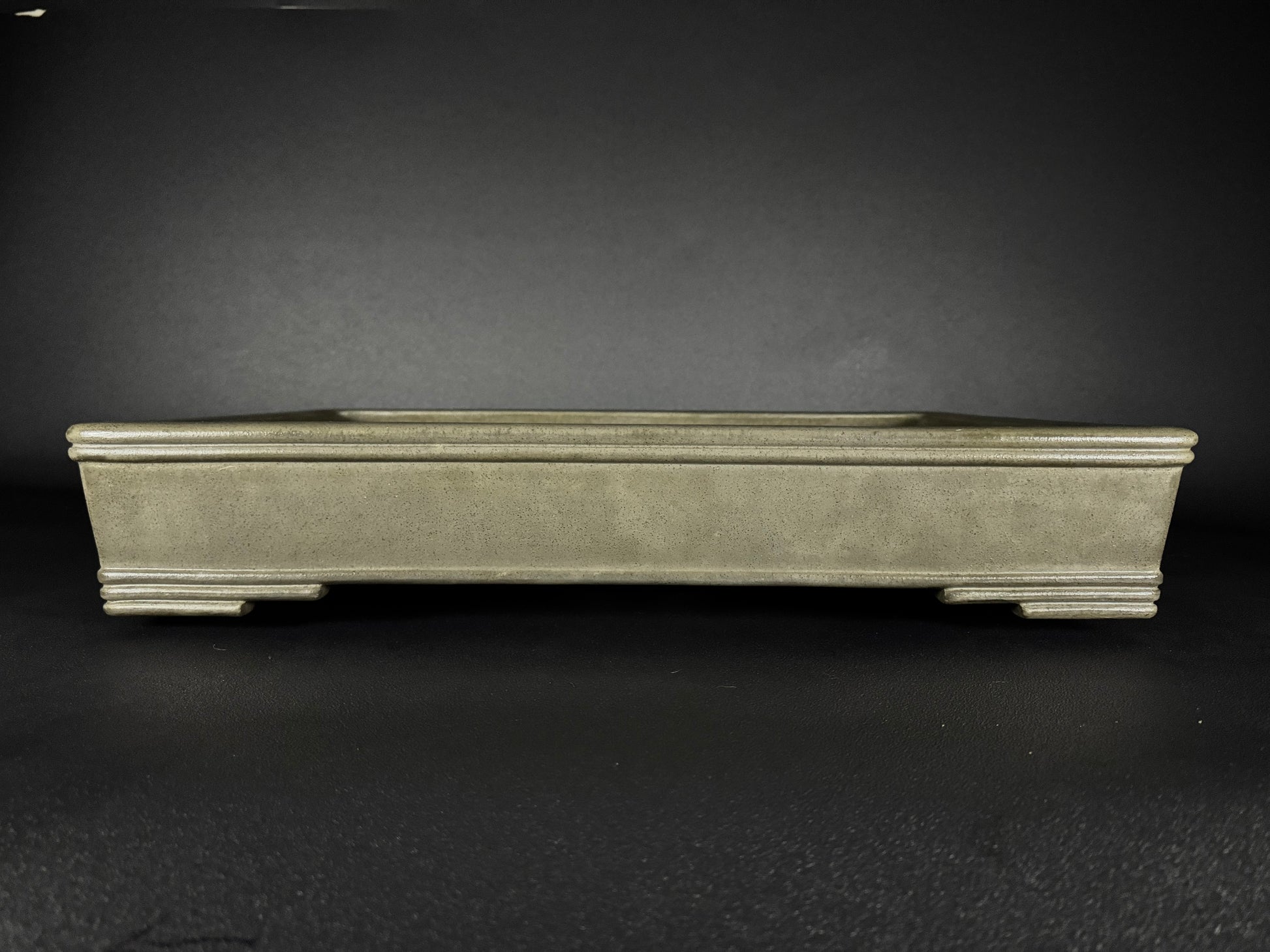 It features, A pronounced internal planting rim (内縁, nai-en)Slightly tapered walls that widen gently from the base to the rim, crisp square-edged corners, lending it a strong architectural profile, a distinctive dual top band (二重上縁, nijū jōen): two finely articulated parallel ridges just below the rim, adding a sense of layering and crafted detail that elevates the otherwise minimal form.