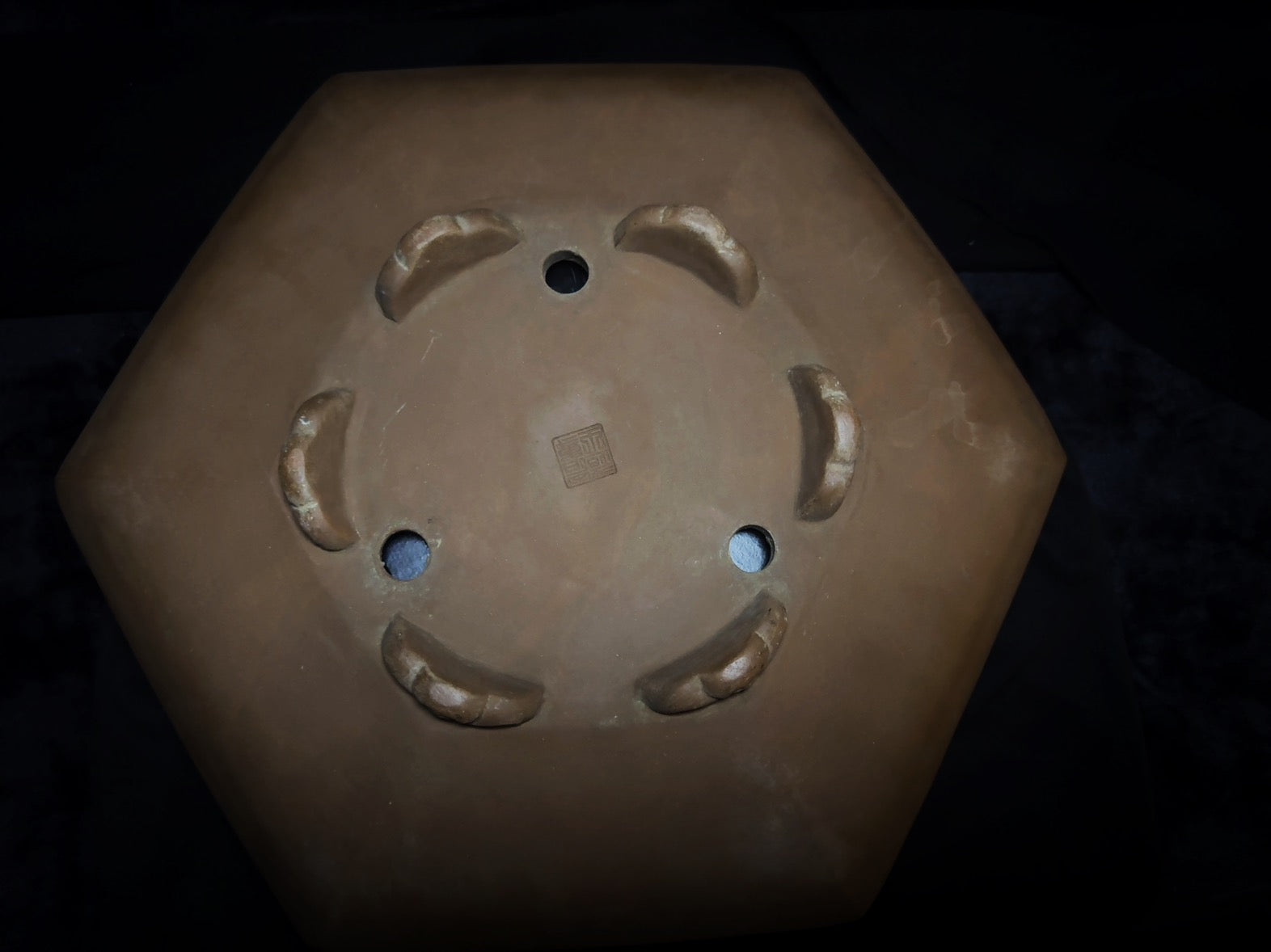 Antique Bonsai Pot – Taisho Era (1912–1926) – Watanabe Keizo (渡辺慶三), Tokoname (常滑) - 45cm Hexagonal