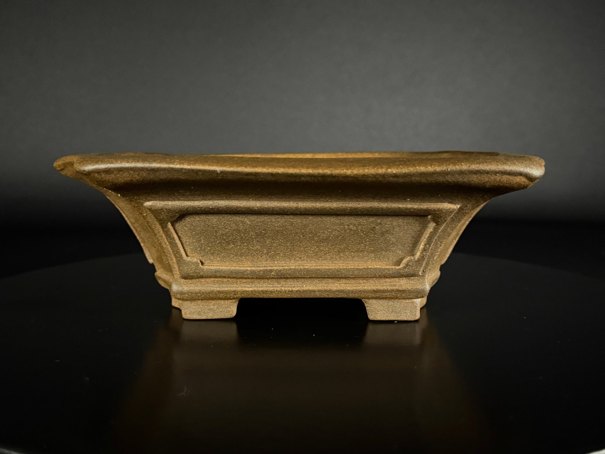 An elegant hand-crafted Tokoname 常滑 pot by the renowned artisan Takashi Kosaka. The form is a refined rectangular (長方形) shape with gently flared walls (反り), giving the piece a sense of quiet expansion and harmony. The broad outward-curving lip (口縁) imparts strength, while the precisely cut feet (切り足) elevate the pot with balance and grace.