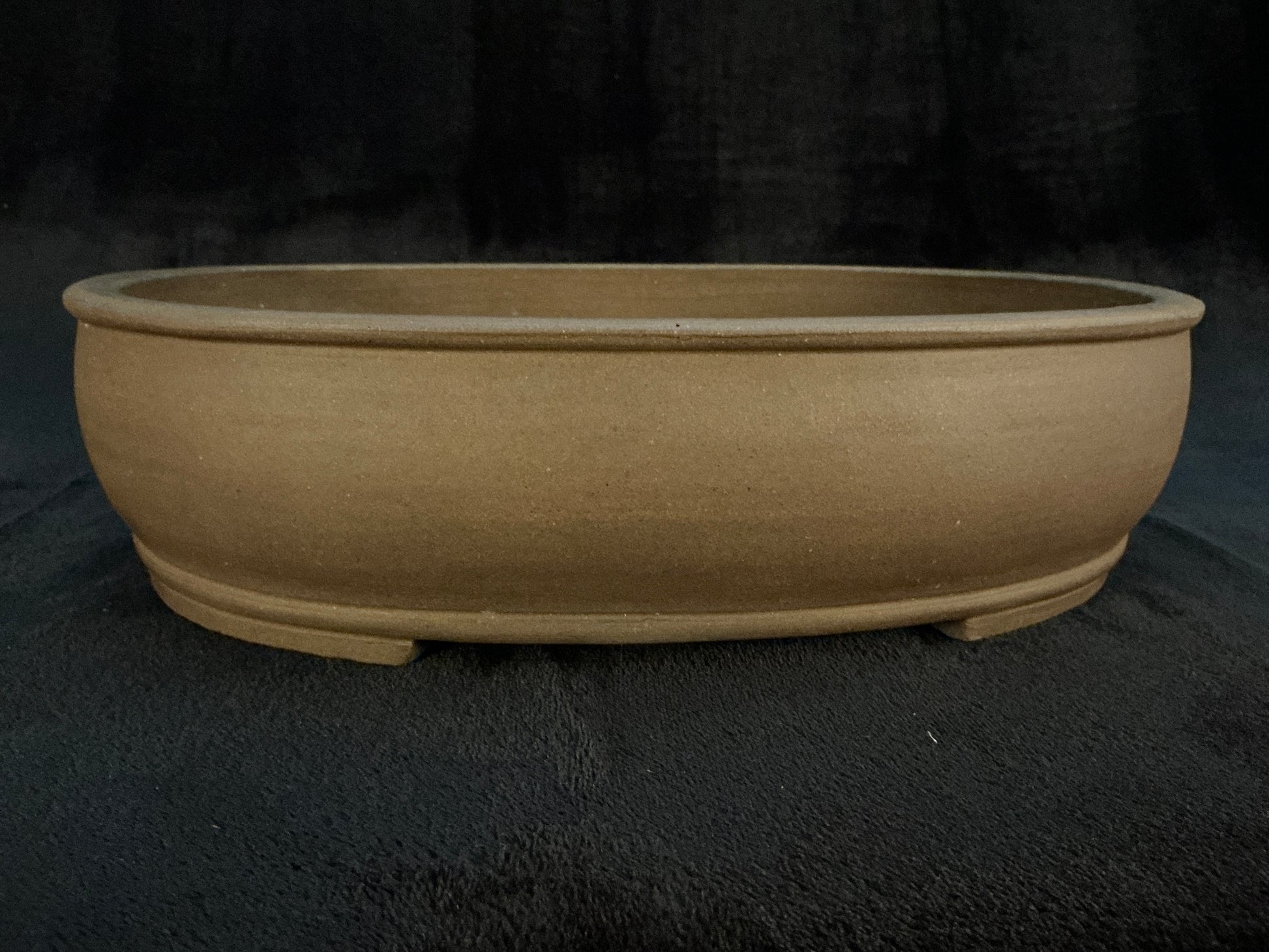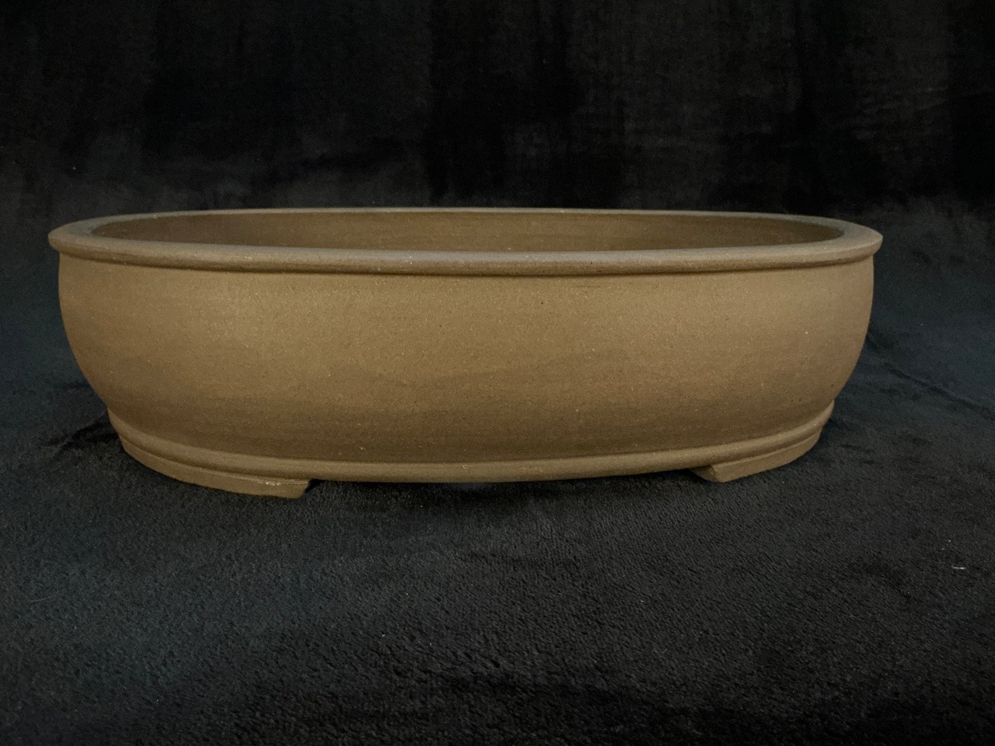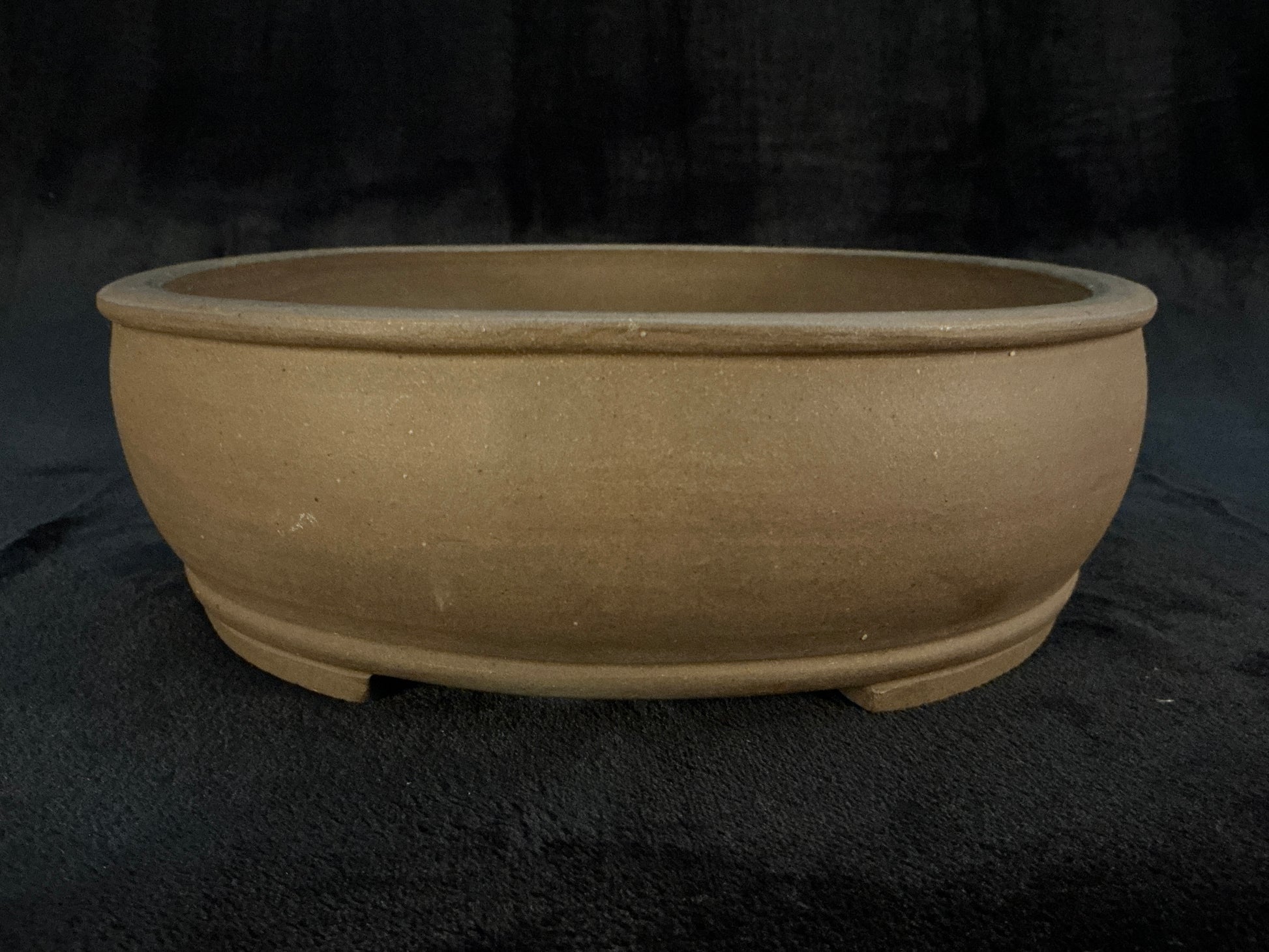 Unglazed oval with a slight internal rim, upper and lower bands, and slightly recessed cut feet subtle but powerful presence, without visually competing with your tree