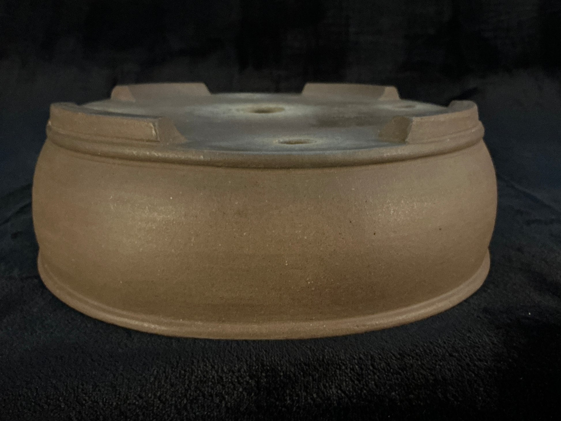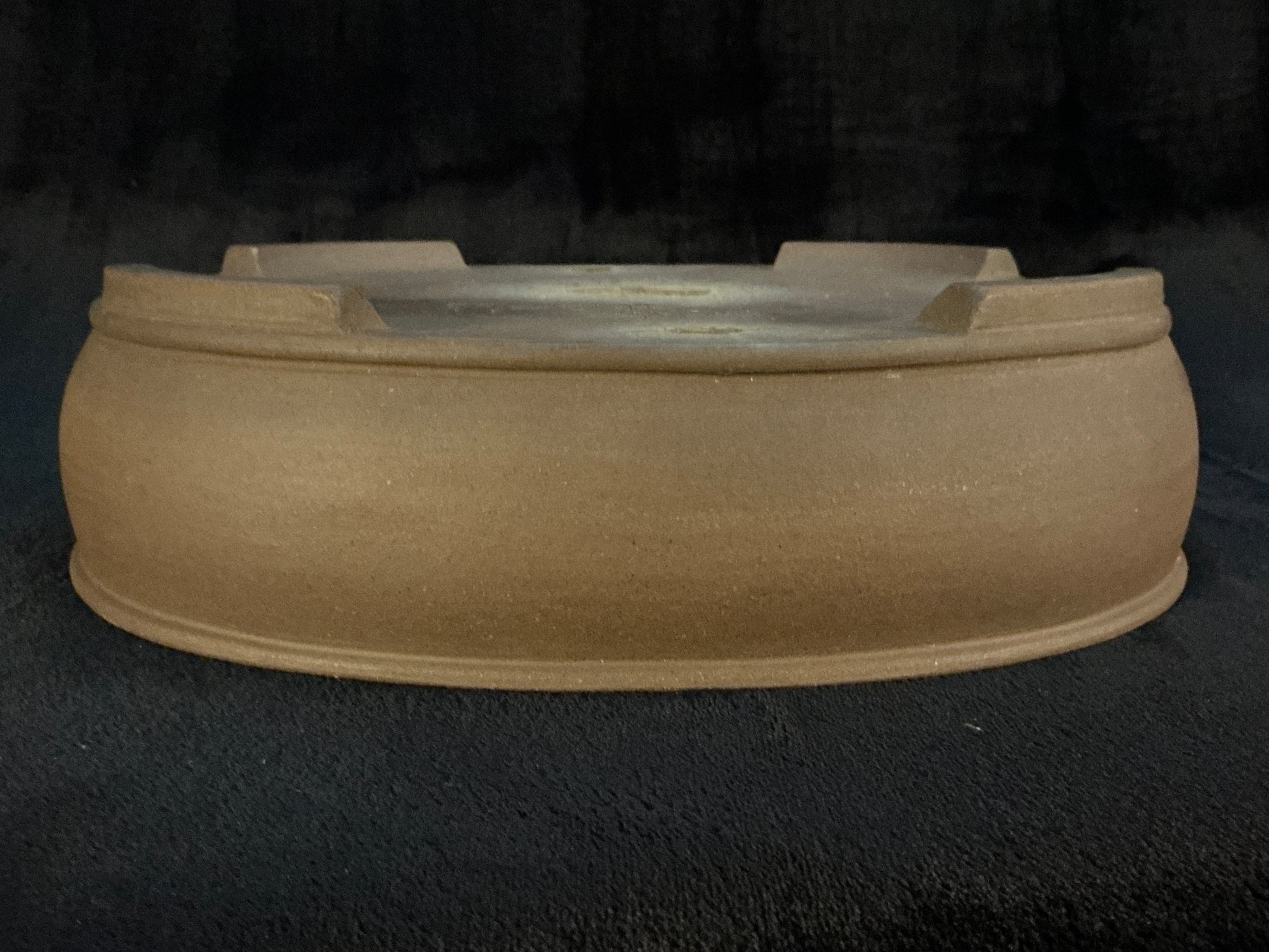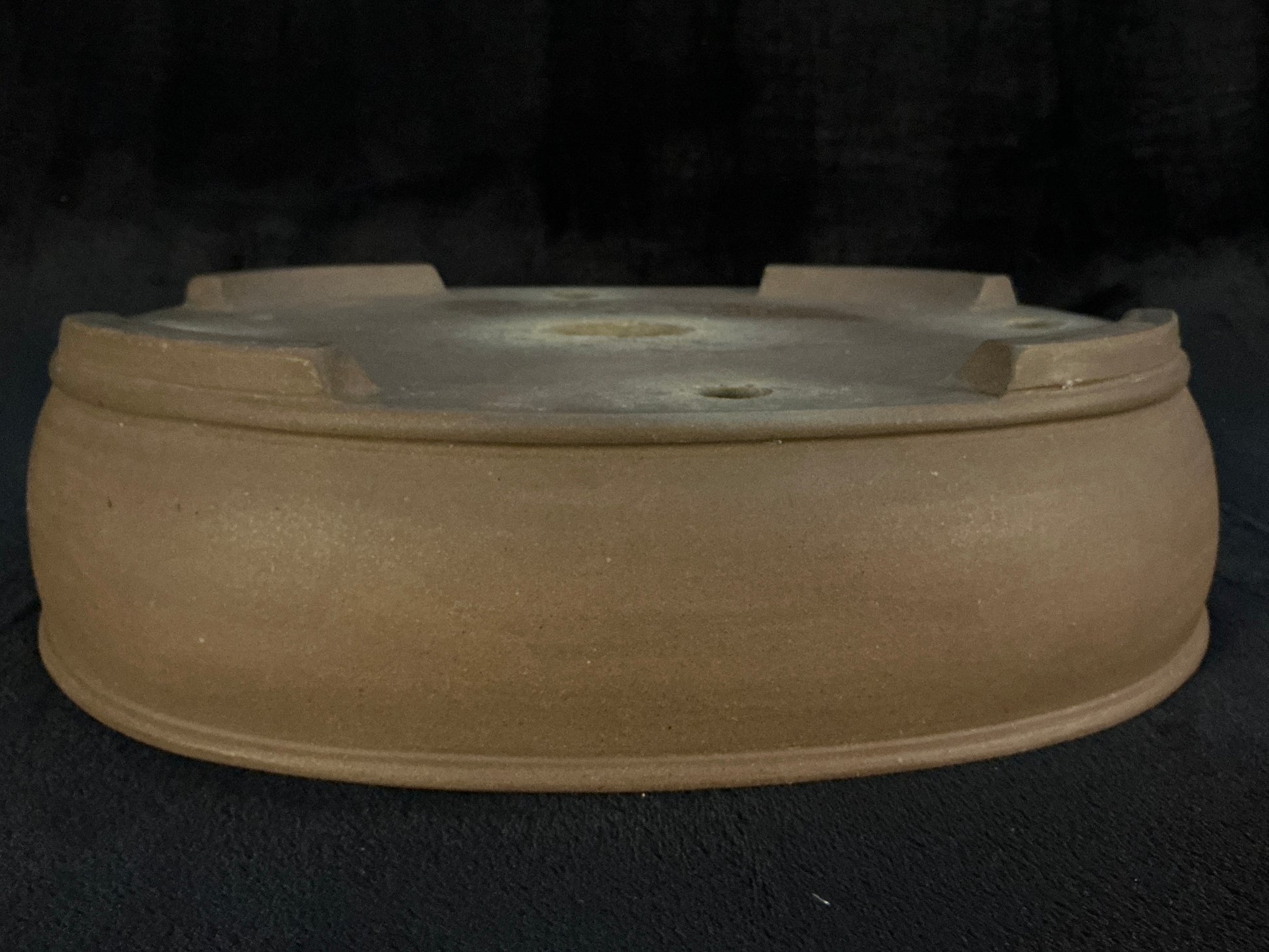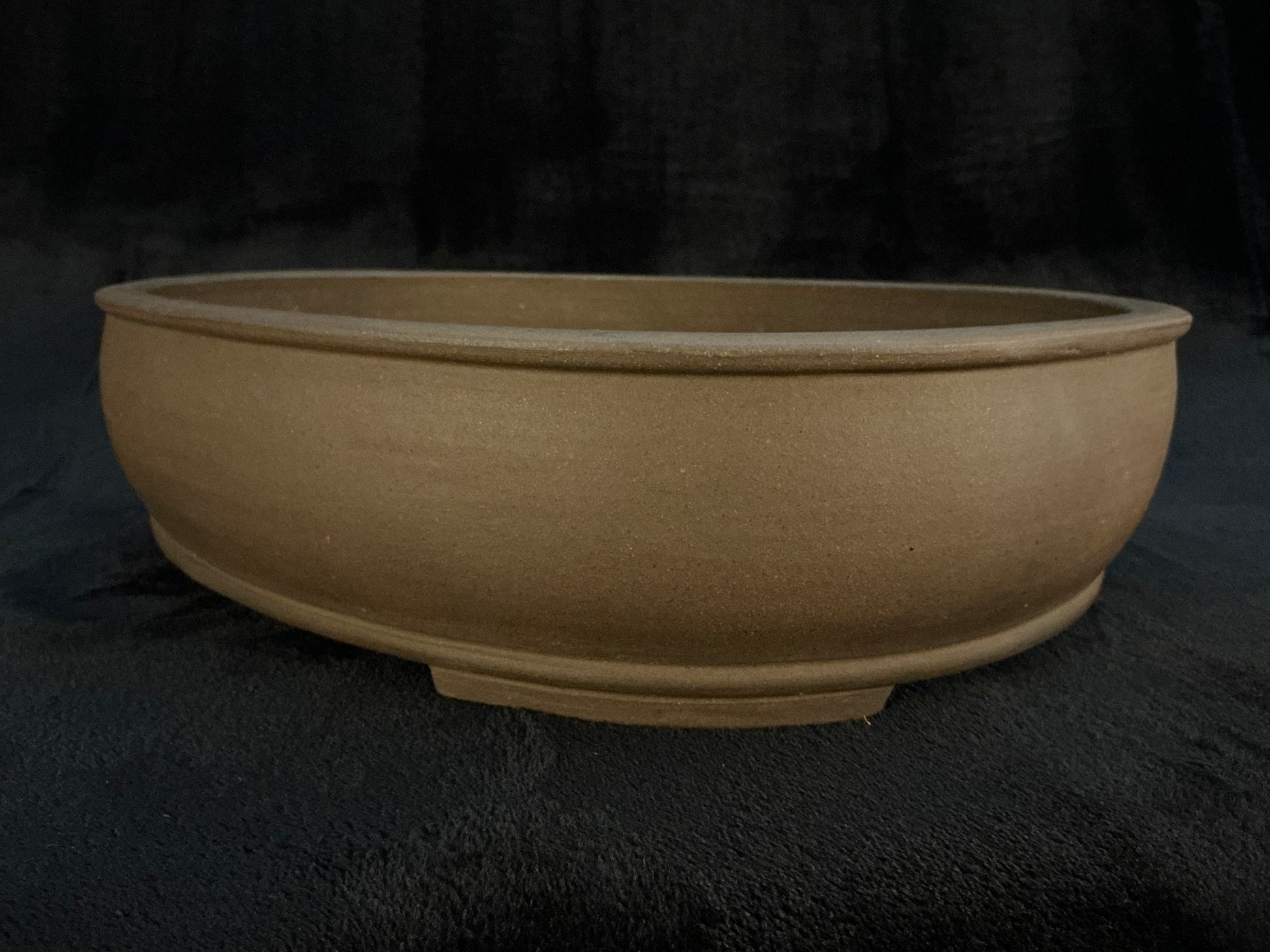 Unglazed oval with a slight internal rim, upper and lower bands, and slightly recessed cut feet subtle but powerful presence, without visually competing with your tree