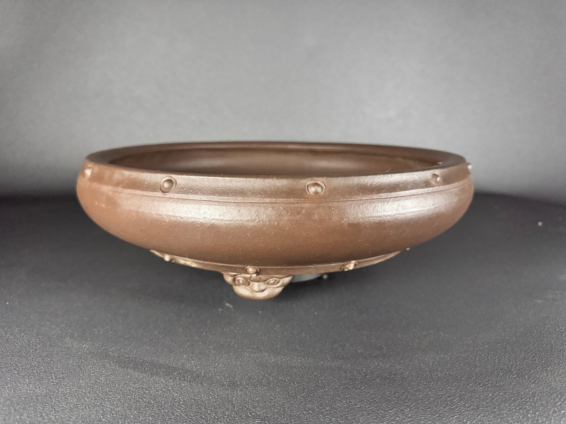 The overall silhouette, from the subtle curve of the bowl to the weighty support of the demon feet, reflects both refined craftsmanship and the strength associated with classical Japanese bonsai tradition. The pot embodies the shibui (渋い) aesthetic — quiet, mature, and deeply balanced.
